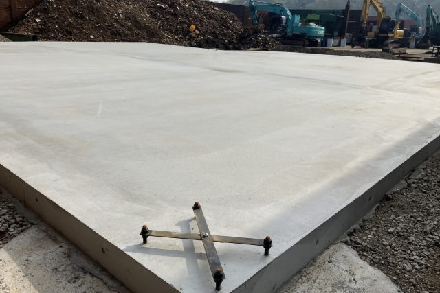 筑西市、工場敷地内にて台貫基礎工事のベース打設が完了しました。