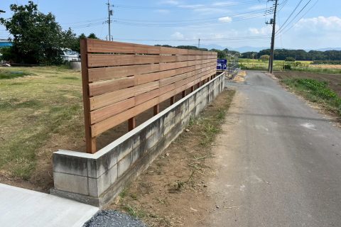 道路からの視線を和らげる目的として、目隠しフェンス工事が完了致しました。